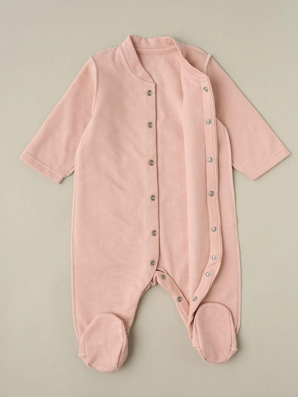Комбинезон из нежного трикотажа на кнопках. Удобная модель, позволит легко и быстро переодевать малыша. Кнопки расположены по центру, сверху донизу. Также, для удобства смены подгузника, мы предусмотрели кнопочки и между ножек.