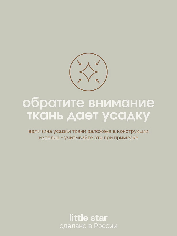Обратите внимание, ткань при первой стирке садится на 3 см, это заложено в конструкции, учитывайте данный факт при примерке изделия