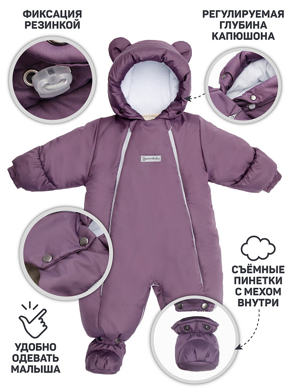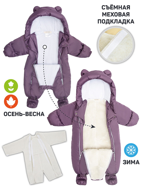 Комбинезон-трансформер зимний меховой AmaroBaby Snowy Travel фиолетовый 74