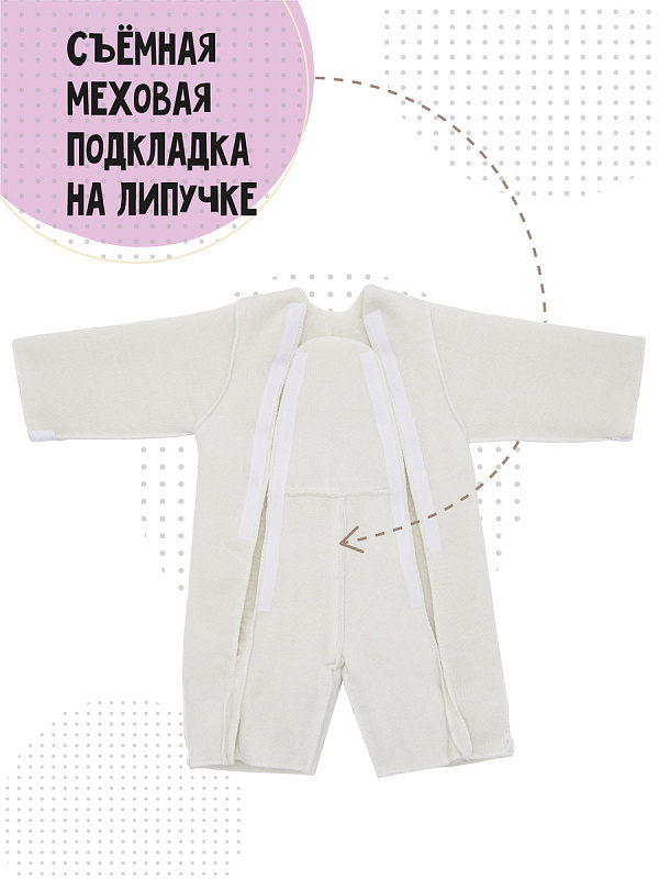 - За изделием легко ухаживать: можно стирать в машинке комбинезон или отдельно подкладку на бережном режиме при температуре не более 30 °С, небольшие загрязнения легко удаляются влажной тряпкой.