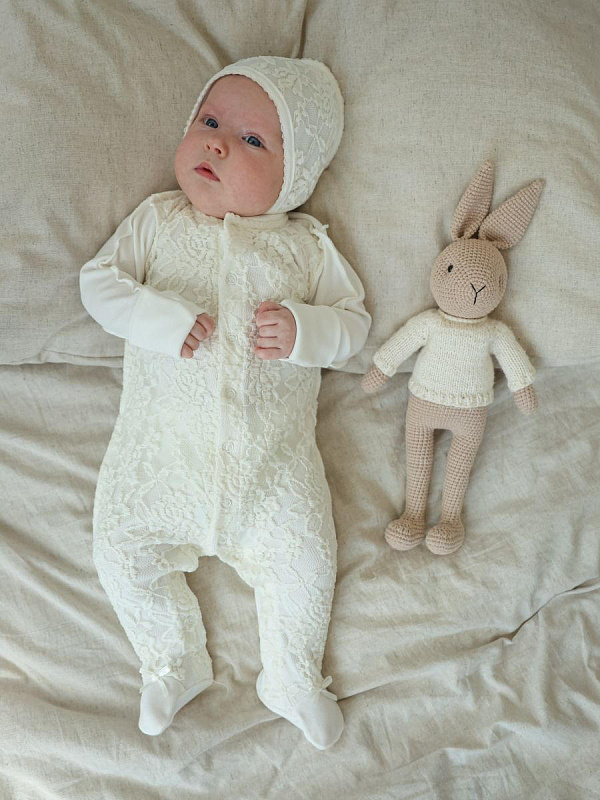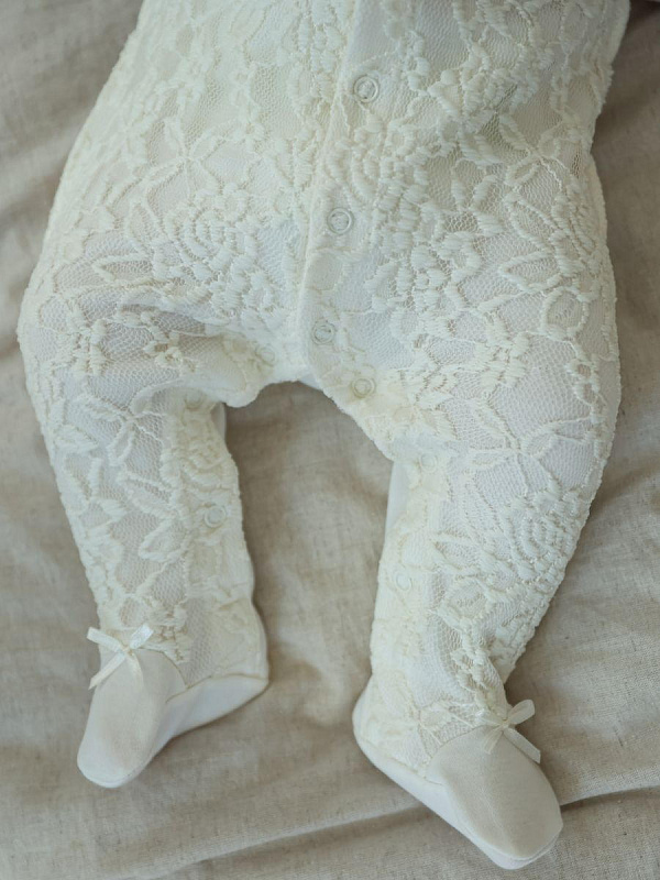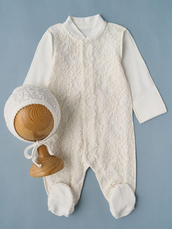 Кружевной набор для выписки малыша из роддома. Комбинезон выполнен из 100% хлопка, швами наружу и украшен кружевом. Чепчик однослойный с завязками, со швами наружу. Комплект смотрится невероятно нежно и станет украшением для Вашей выписки в любое время года. УХОД: рекомендована ручная или машинная стирка с использованием детского порошка, на деликатном режиме, при температуре воды не выше 40 градусов. Не отбеливать. Сушить вдали от обогревательных приборов и прямых солнечных лучей.