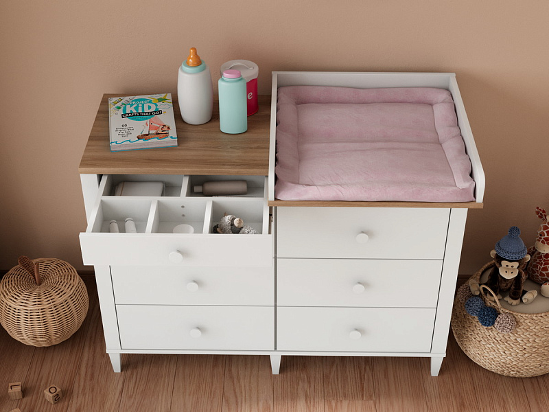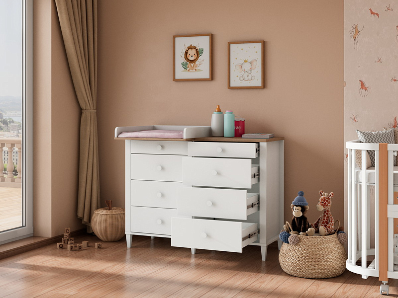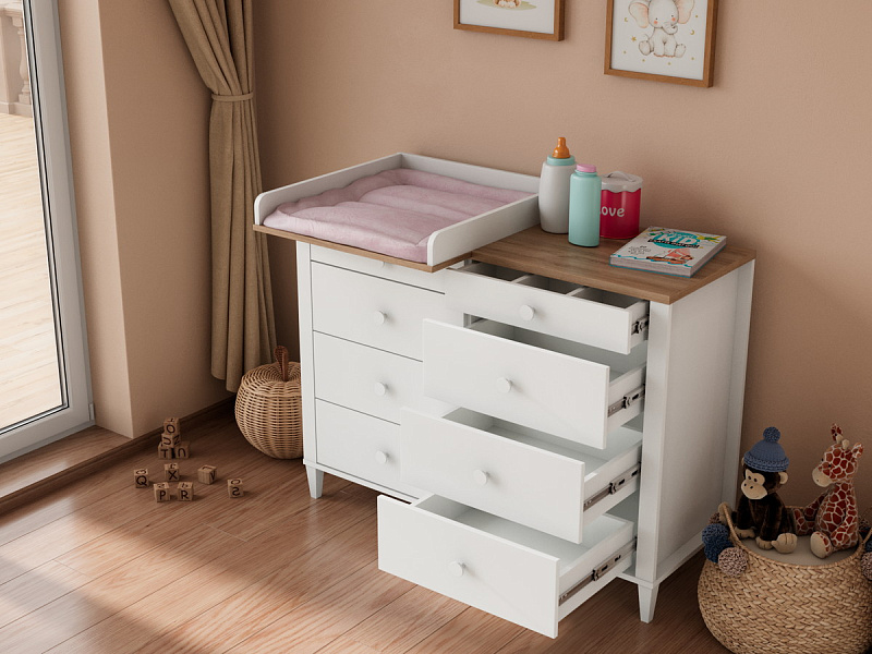 Окунитесь в мир комфорта, стиля и безупречной функциональности! Lunna Astin МДФ – это не просто комод, это ваш верный союзник в трогательной заботе о самом дорогом. Его бесшумные доводчики создают атмосферу покоя, прочные ножки дарят уверенность, а продуманные органайзеры помогают сохранить порядок. Съемный пеленальный столик делает уход за младенцем легким и приятным. Lunna Astin МДФ – ваш островок гармонии в океане материнства.