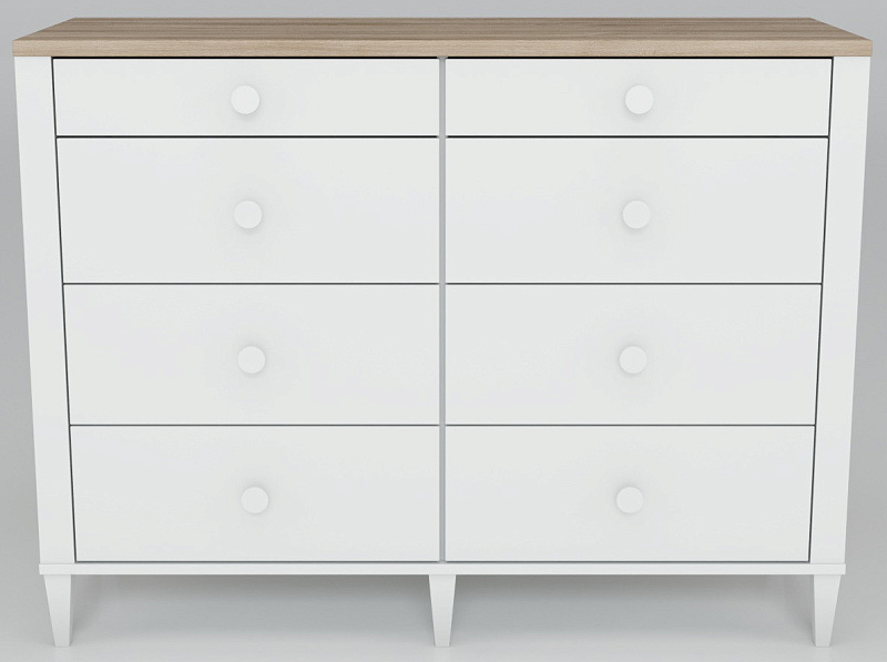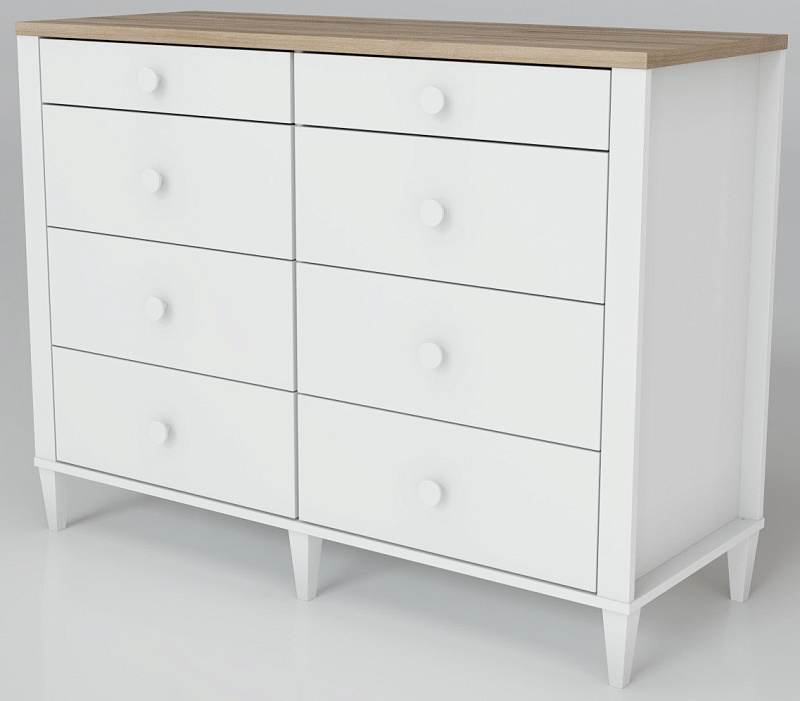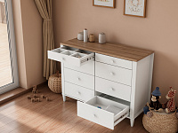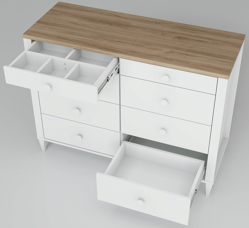 Все восемь ящиков комода, словно по волшебству, двигаются бесшумно и плавно благодаря доводчикам, обеспечивая не только плотное прилегание, но и надежную защиту от пыли.