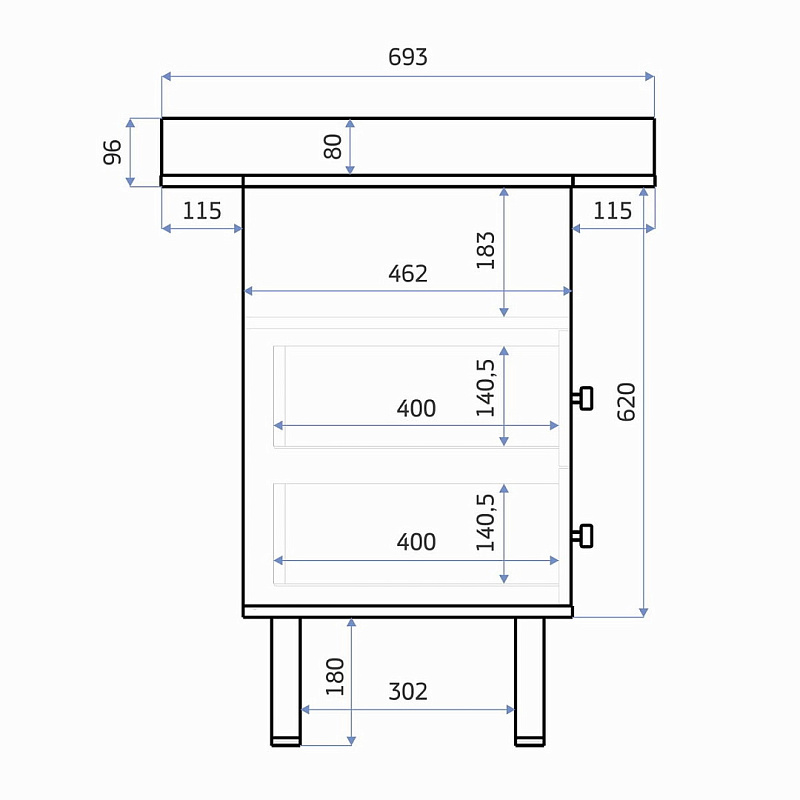 Два вместительных ящика оборудованы шариковыми телескопическими направляющими полного выдвижения. Ручки ящиков металлические, надежные с матовой, мягкой и приятной на ощупь шляпкой.