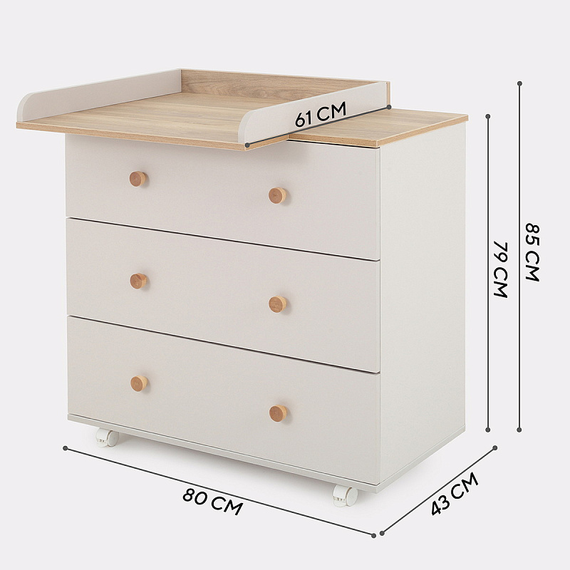 комфортная ширина комода позволит как переодевать малыша, так и хранить необходимые предметы гигиены рядом