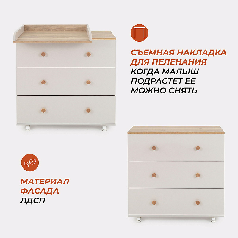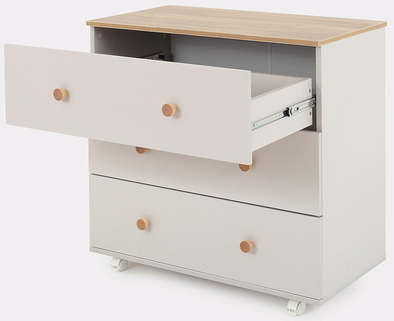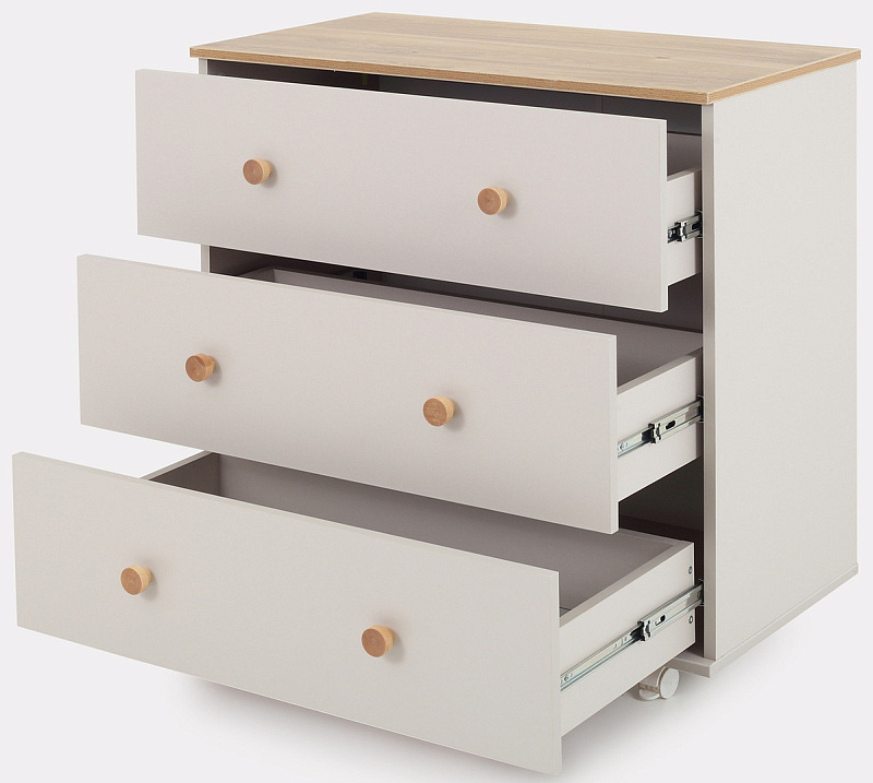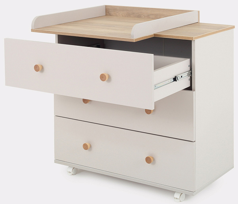 3 вместительных выдвижных ящика бесшумны - они не потревожат спящего кроху