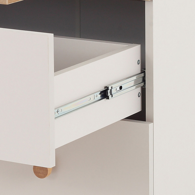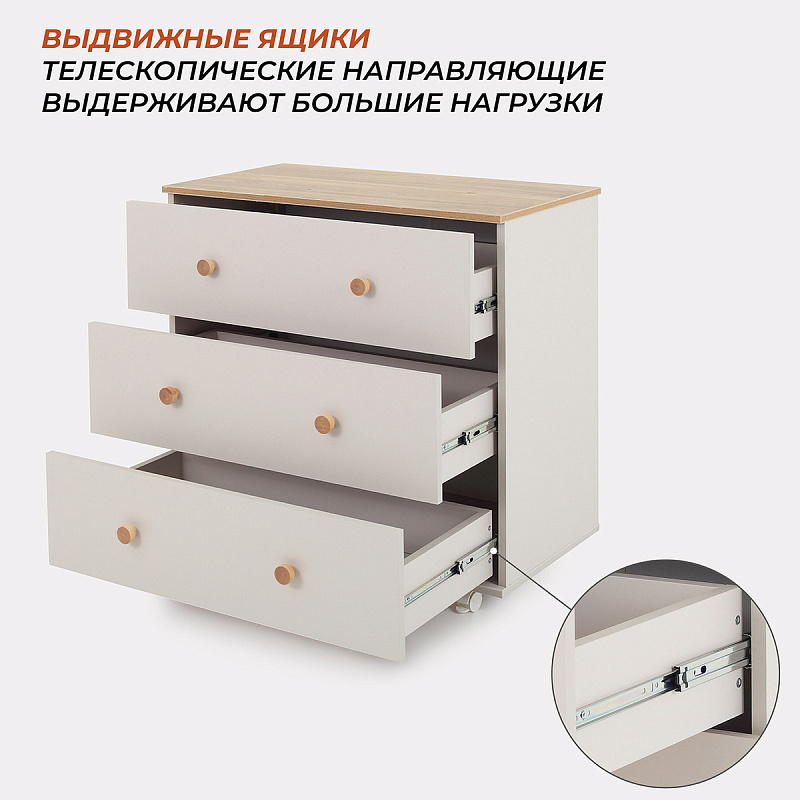 к тому же ящики дополнены телескопическими направляющими, благодаря которым комод способен выдерживать большие нагрузки на протяжении длительного времени