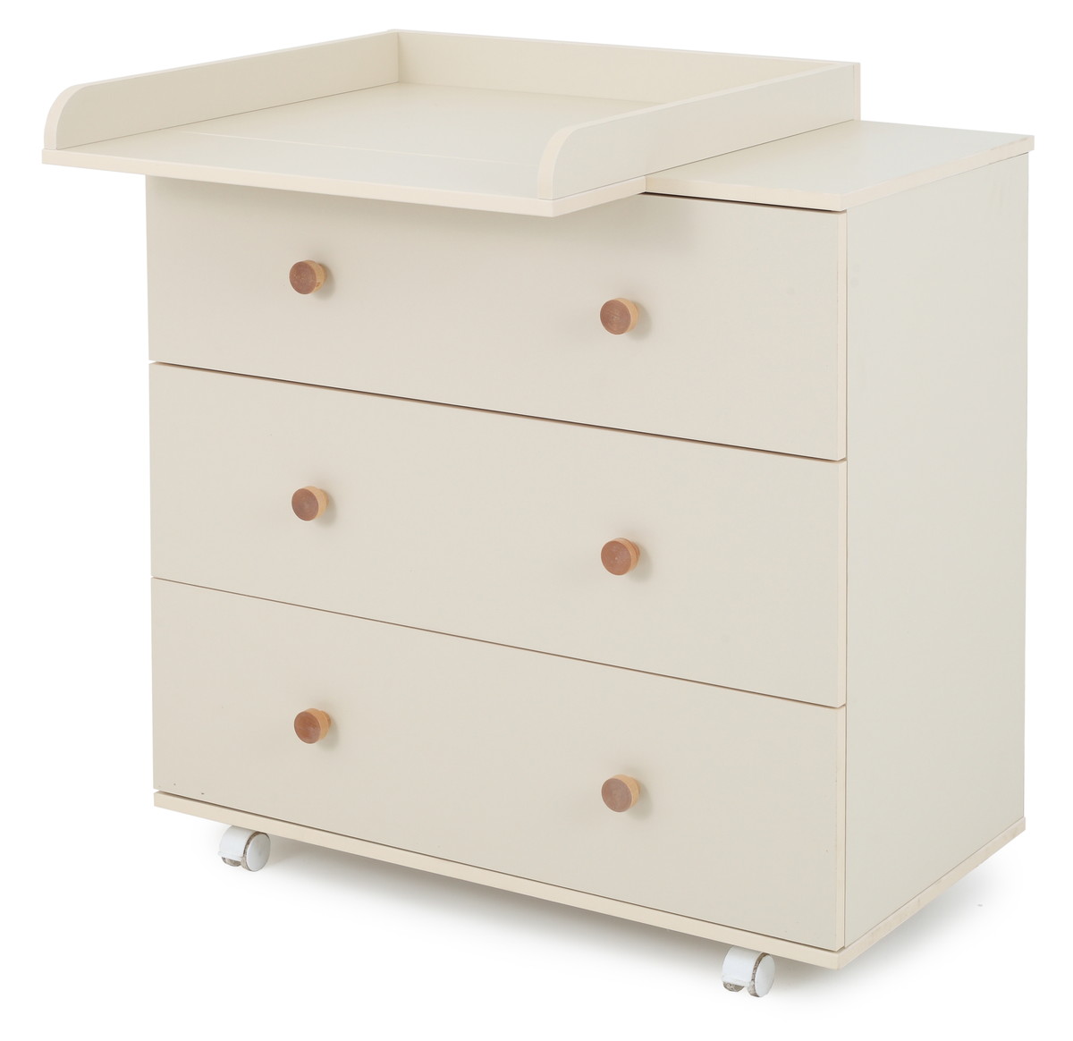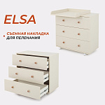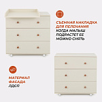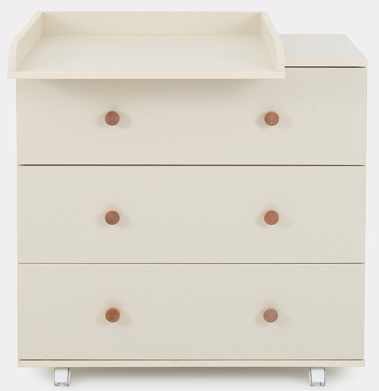комод дополнен бортиком, превращающим его в полноценный пеленальный столик. Бортик можно установить в двух положениях - слева и справа.