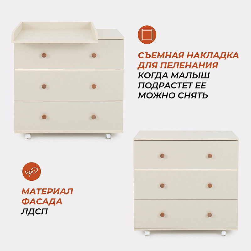 3 вместительных выдвижных ящика бесшумны - они не потревожат спящего кроху