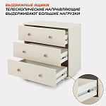 к тому же ящики дополнены телескопическими направляющими, благодаря которым комод способен выдерживать большие нагрузки на протяжении длительного времени