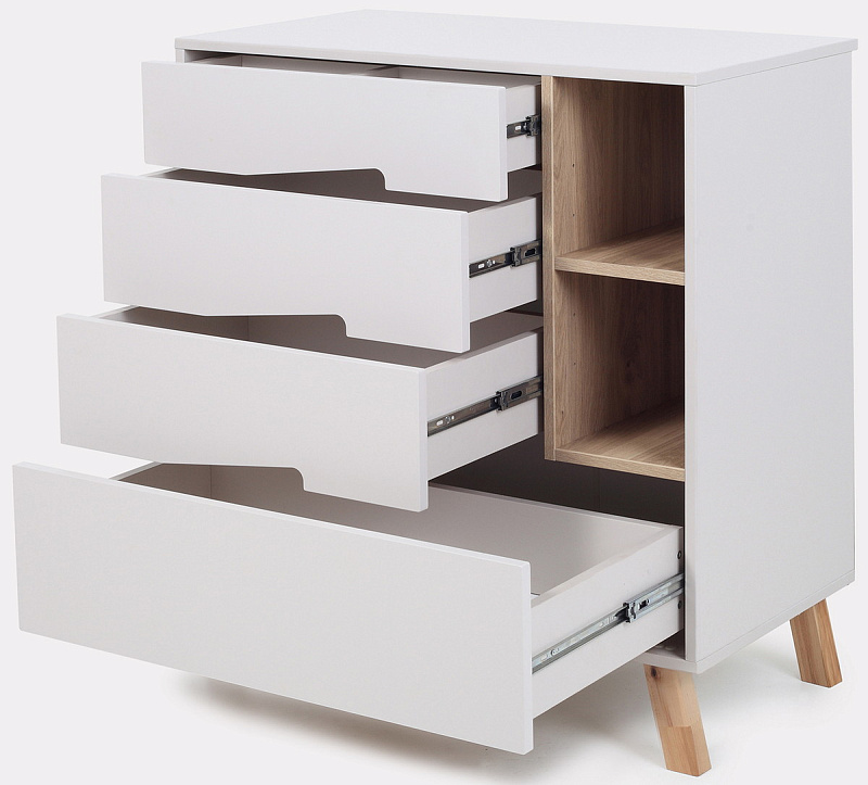 4 вместительных выдвижных ящика бесшумны - они не потревожат спящего кроху
