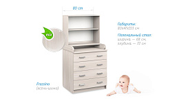 Изюминкой комода Sweet Baby Albero являются вместительные полочки, на которые можно поставить милый музыкальный ночничок, игрушки, рамки с первыми фотографиями малыша и комната станет еще уютнее.
