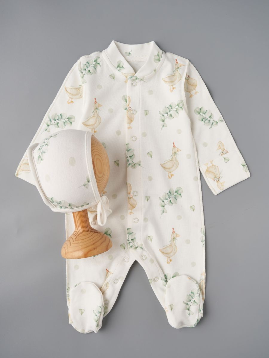 Комплект 2 пр. Little Star Гуси с веточками эвкалипта комбинезон с чепчиком крем 62
