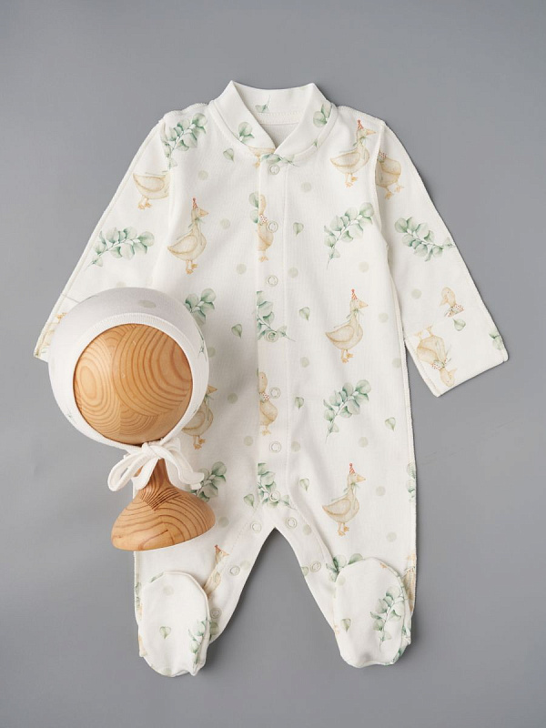 Комплект 2 пр. Little Star Гуси с веточками эвкалипта комбинезон с чепчиком крем 62Нет оценокХарактеристики