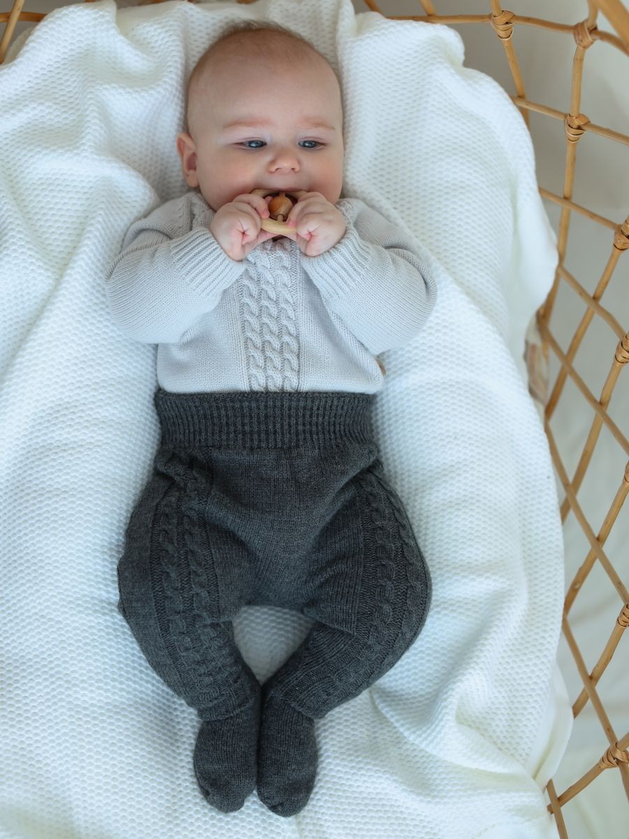 Комплект 2 пр. Little Star Henry джемпер-боди и ползунки вязаные 0035 св.серый-графит 62