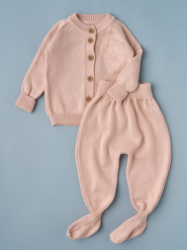 Комплект 3 пр. Little Star кофточка ползунки чепчик 80034 вышивка, кораллово-розовый 56