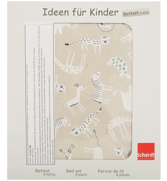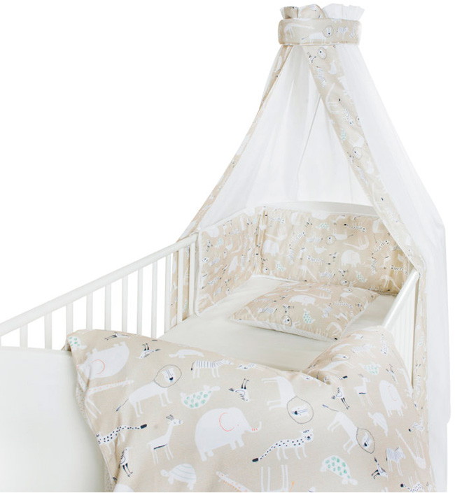 С этим текстильным комплектом ребёнок с первых же дней будет окружён теплом и заботой. Мягкая пастельная цветовая гамма гармонично сочетается с любой коллекцией мебели Schardt. Забавные зверюшки на цветной ткани-компаньоне развлекут малыша во время его бодрствования.