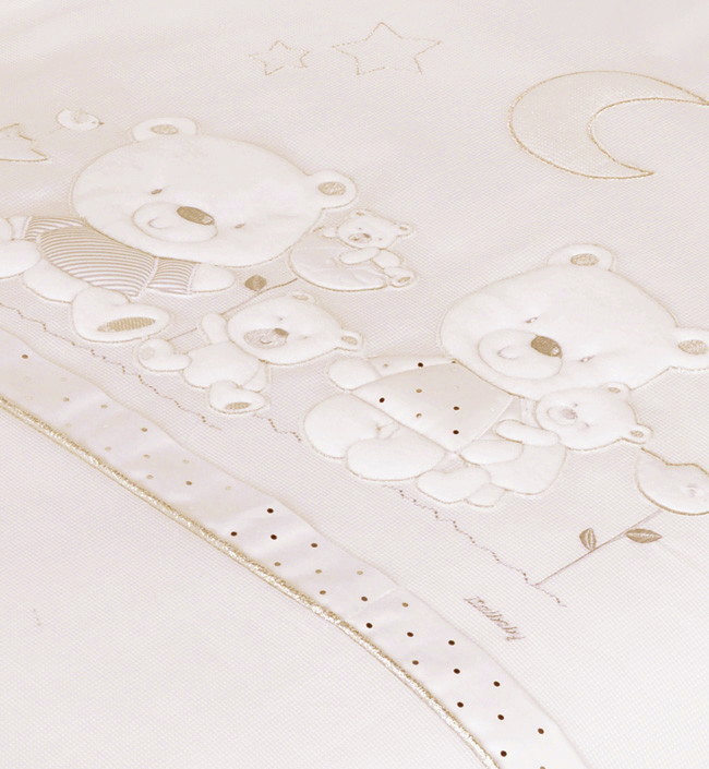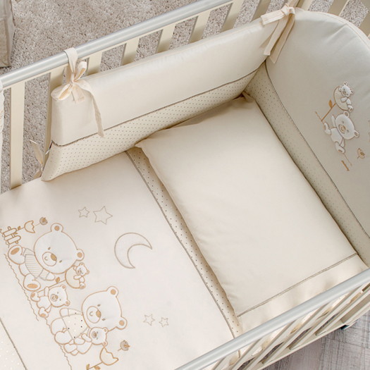 Следуя самым модным тенденциям в текстильном декоре детской, Italbaby в новых коллекциях отказывается от напыщенного декора и романтического кружева. Теперь роскошный уют малыша воплощен в россыпи звездной пыли и лаконичных очаровательных аппликациях в виде любимых детских героев. Вместе с малышами, мишки сладко спят, удивляются и радуются новым открытиям.