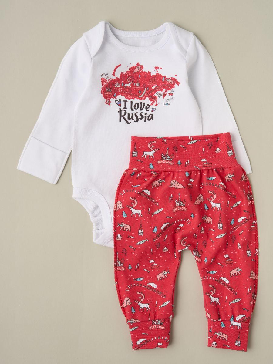 Комплект боди и штанишки интерлок Little Star 728266 i love russia, белый 62