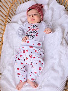 Набор одежды для малыша состоит из боди и штанишек. Выполнен из 100% хлопка, украшен принтом. Комплект смотрится невероятно мило. УХОД: рекомендована ручная или машинная стирка с использованием детского порошка, на деликатном режиме, при температуре воды не выше 40 градусов. Не отбеливать. Сушить вдали от обогревательных приборов и прямых солнечных лучей.