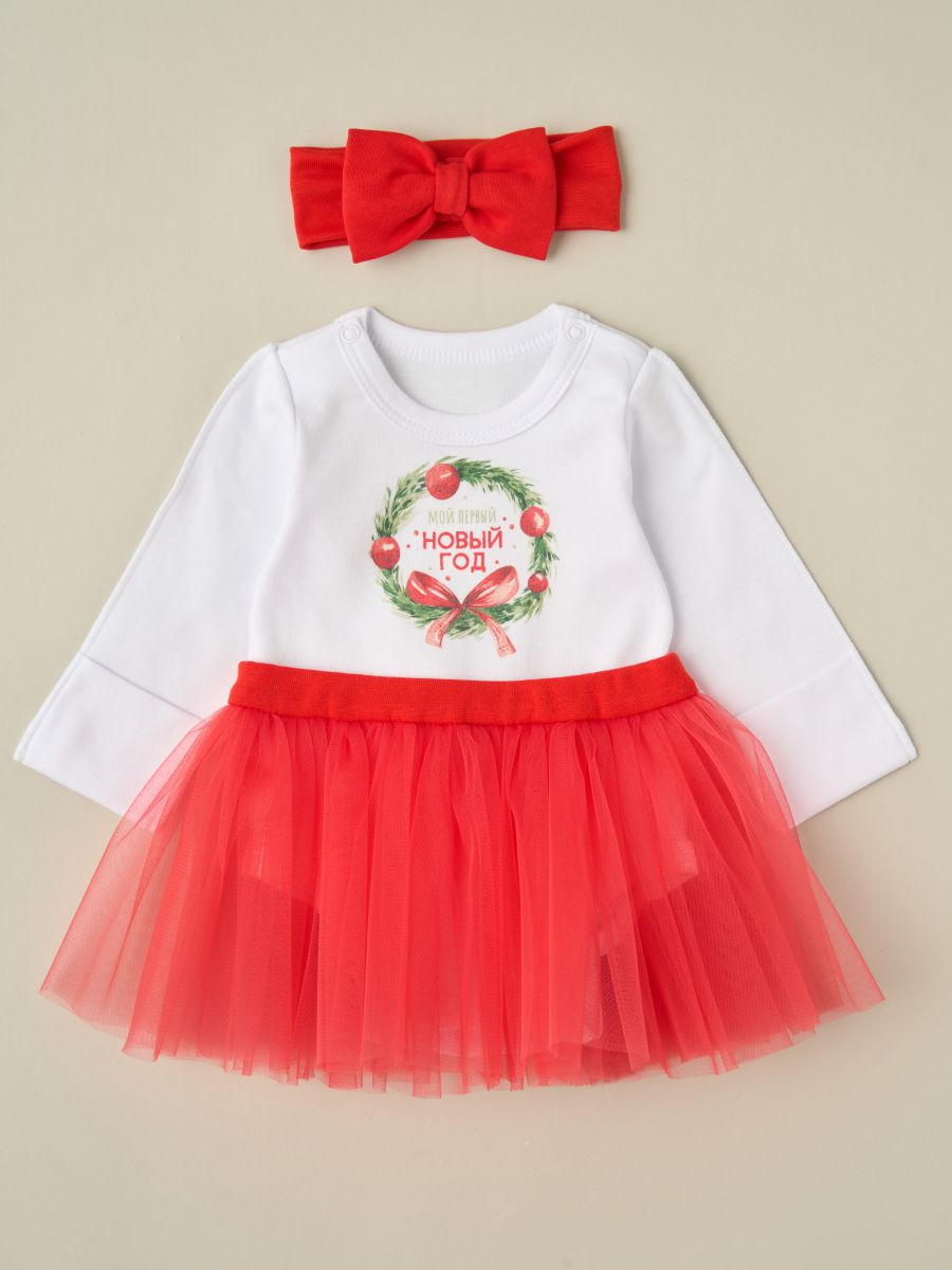 Комплект для девочки Little Star Мой первый новый год 715216 (ЧЗ-мз) белый/красный 62