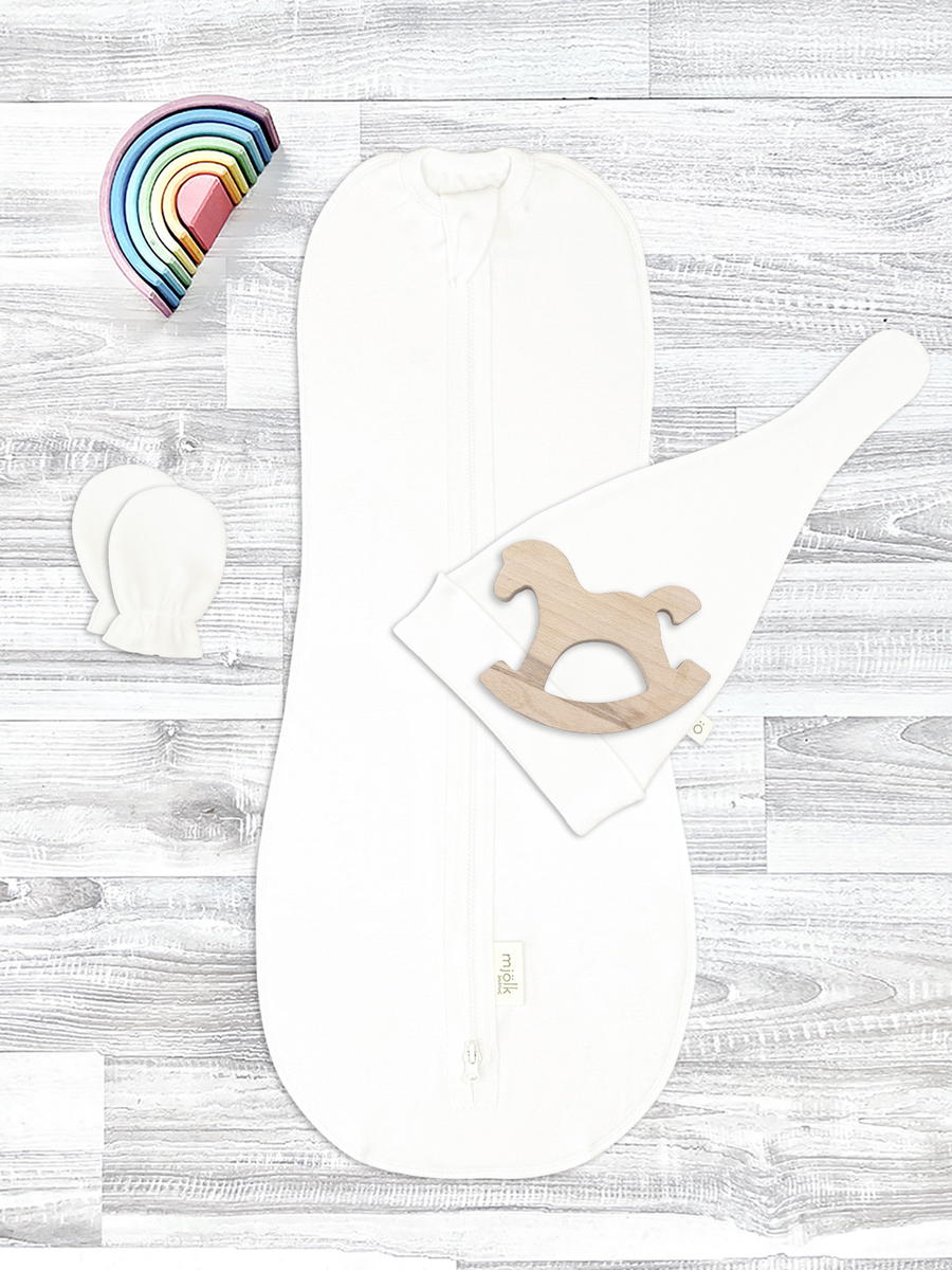 Комплект для новорожденного Mjolk Молочный пеленальный кокон, шапочка, антицарапки 56