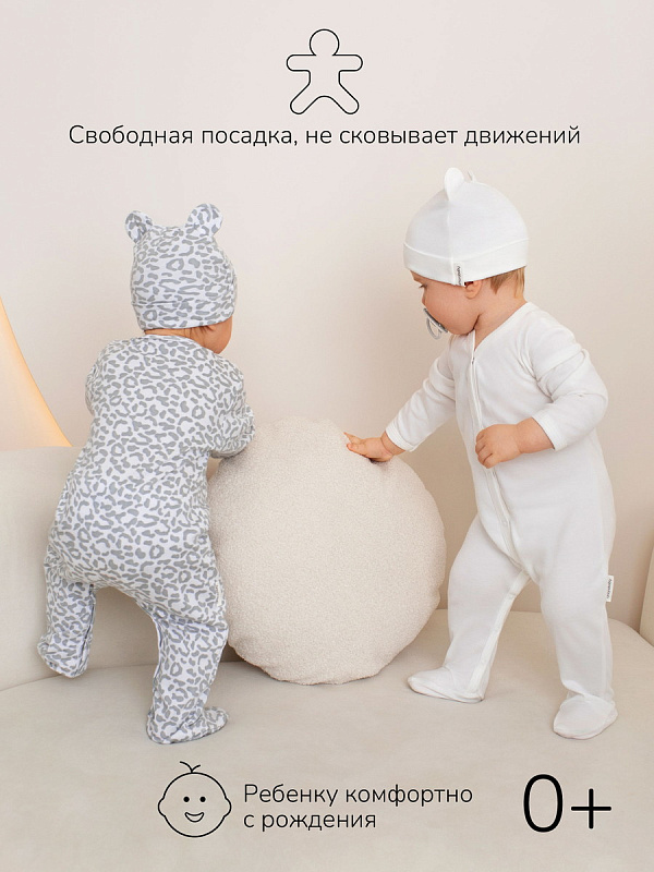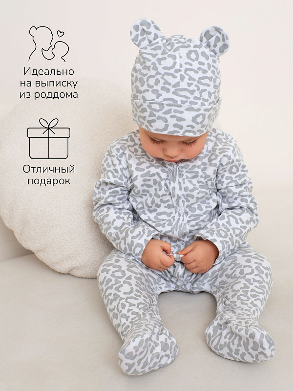 Комплект комбинезонов (слипов) AmaroBaby Nature с шапочкой белый, леопард 80