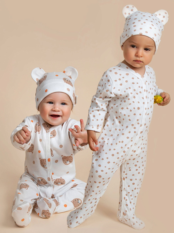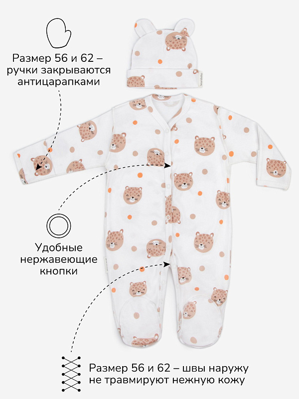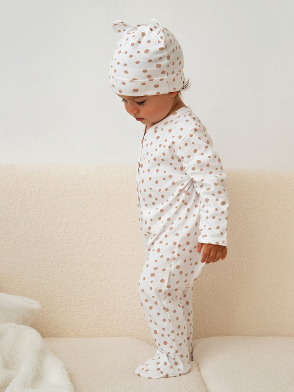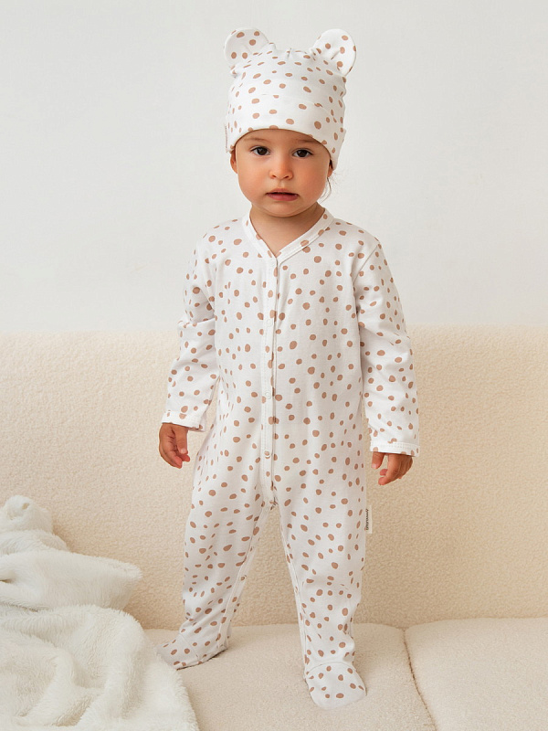 Комплект комбинезонов (слипов) AmaroBaby Nature с шапочкой горошек, леопарды 801 оценкаХарактеристики
