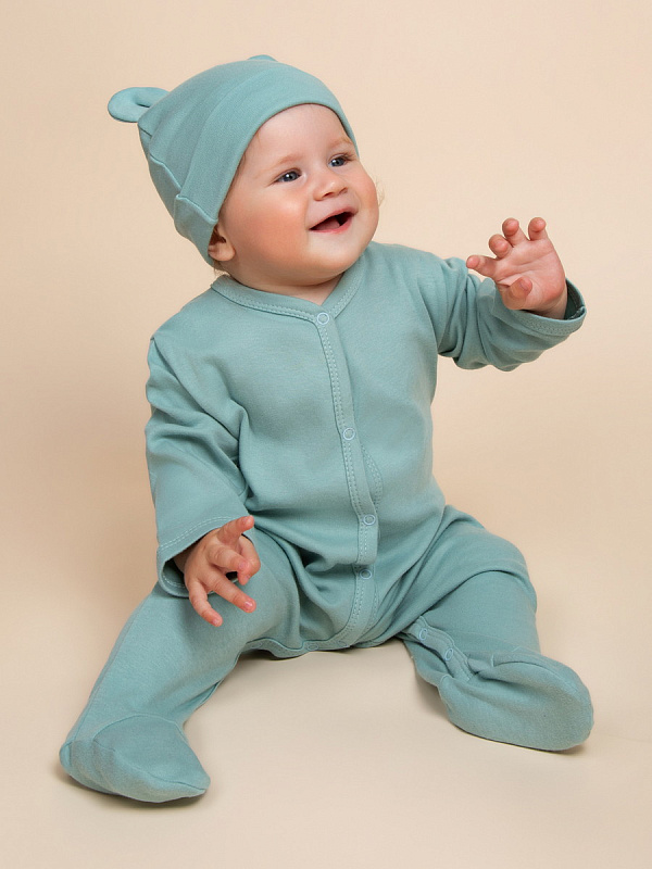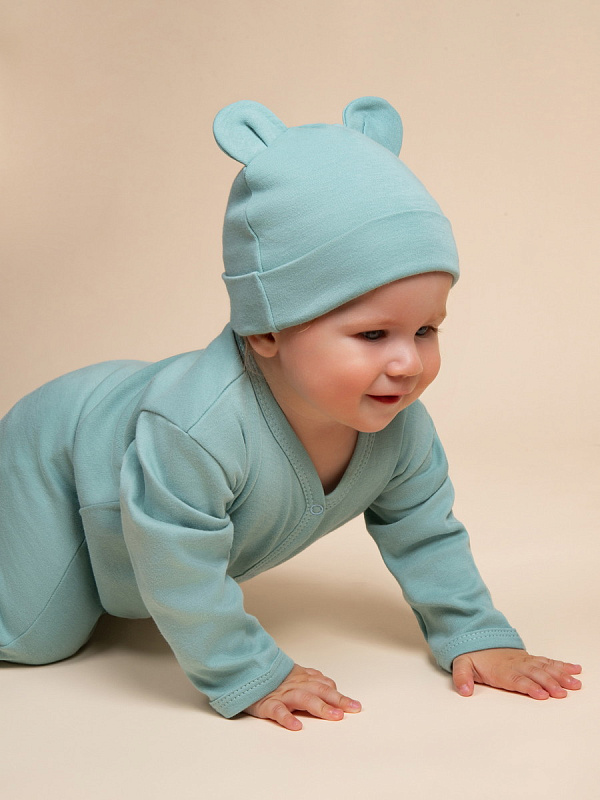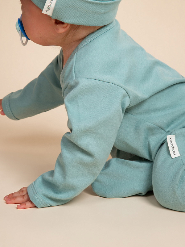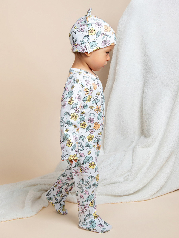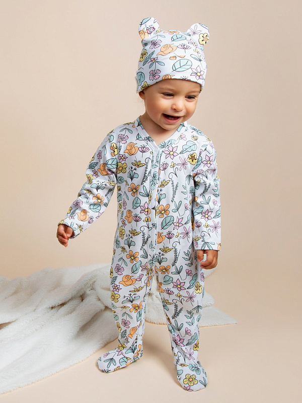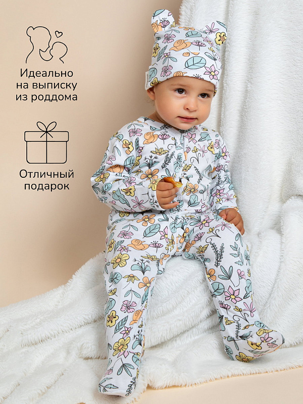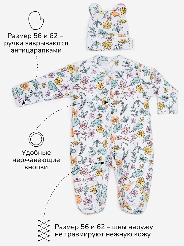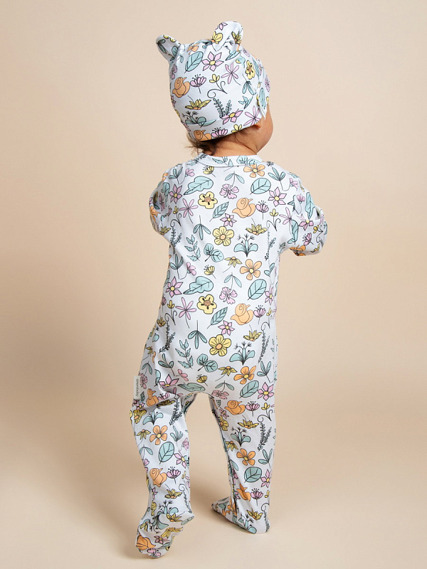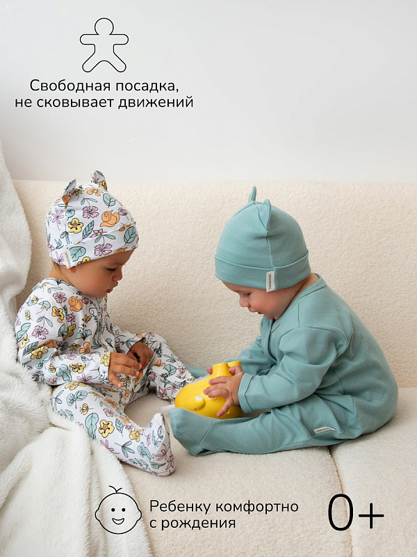 Комплект комбинезонов (слипов) AmaroBaby Nature с шапочкой мятный, цветы 62