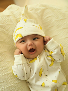 Комплект котелков для малыша. Шапочка выполнена из натурального хлопка. Ткань не будет раздражать голову. Модную и мягкую шапочку малыш может носить круглый год, защищая ушки от сквозняков и головку от перегрева на солнце. Декорирована декоративным узелком на затылке.