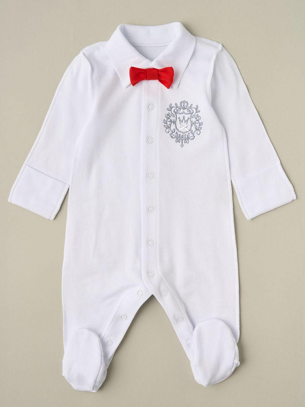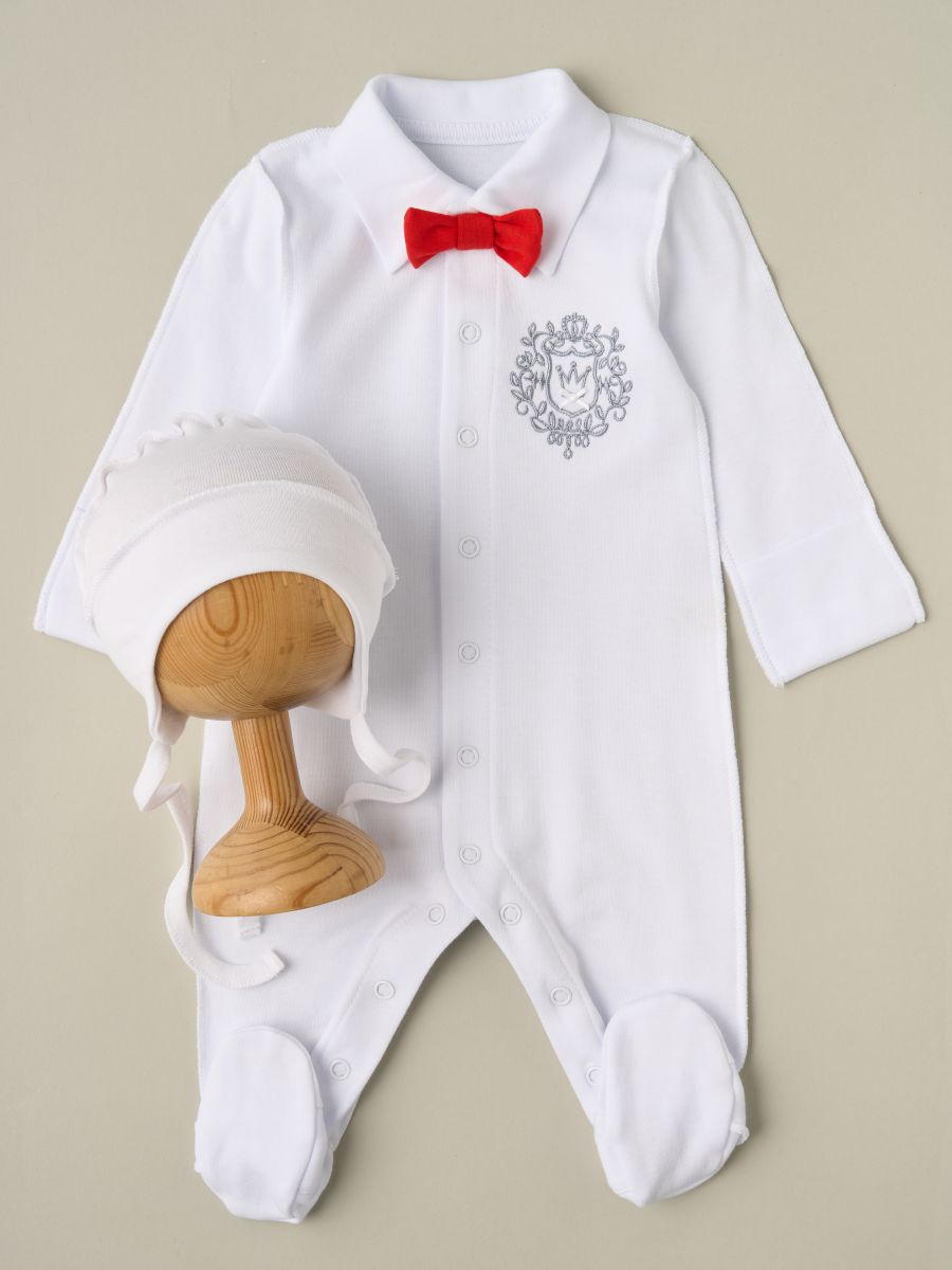 Комплект Little Star Герб Корона комбинезон и чепчик 32321 (ЧЗ-мз) белый 56