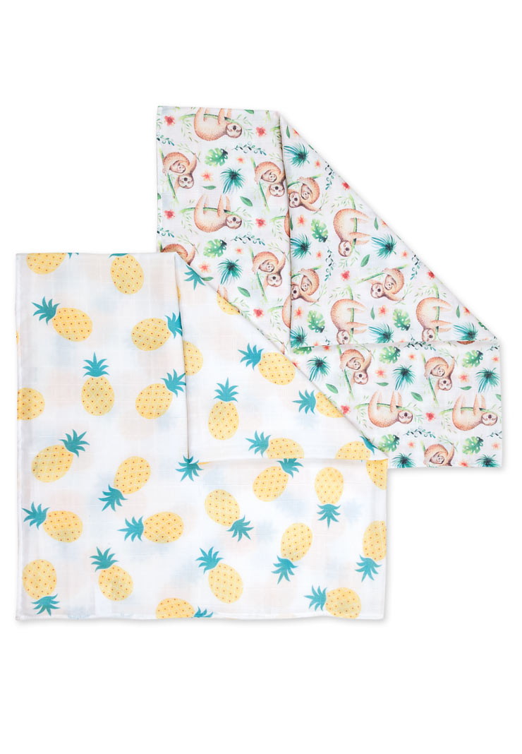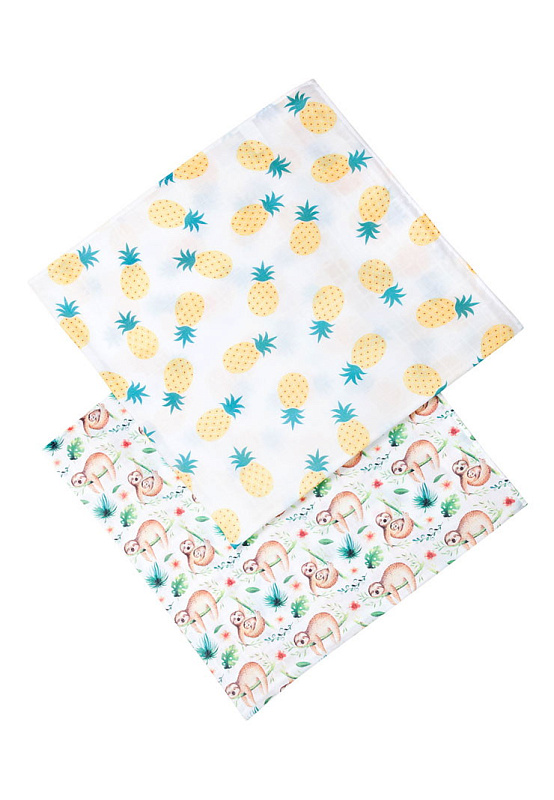 Комплект муслиновый Сонный Гномик Ананас и Ленивец (пеленки 2шт + салфетки 2шт)