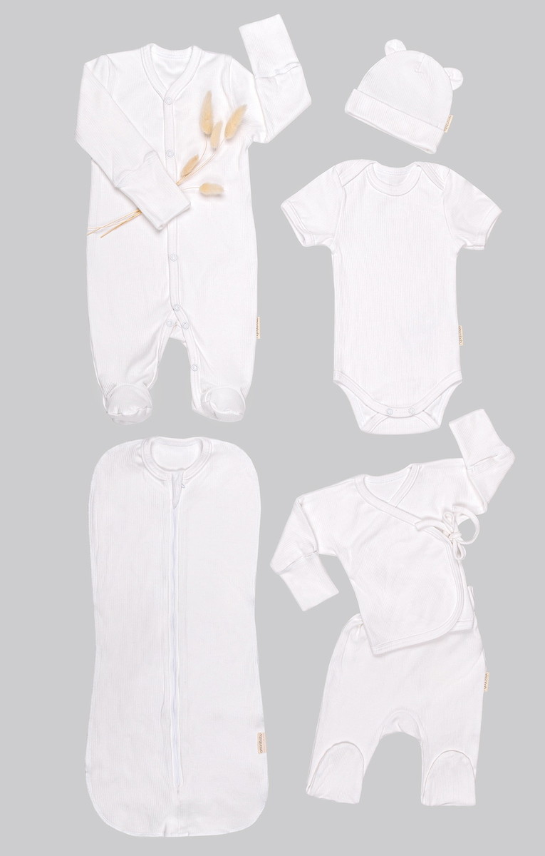 Универсальные сочетания однотонной одежды выглядят всегда эстетично, стильно, легко сочетаются между собой. Комплект отлично подходит как для выписки из роддома, так и для повседневной носки. Комплект для новорожденных - это большая экономия времени и бюджета. В одном наборе вы получаете всю необходимую одежду для малыша на первый месяц.