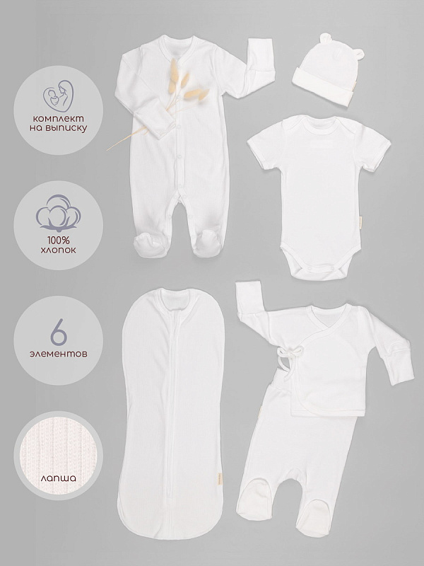 Комплект на выписку Amarobaby Newborn 6 предметов молочный 62