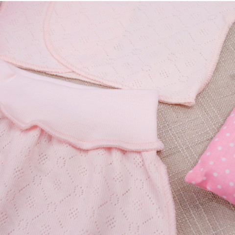Элегантный и функциональный комплект на выписку Крошкин дом Грациозо Ажур вяз. лето 5 предметов, купить который по самой выгодной цене вы можете прямо сейчас на нашем сайте, непременно придется вам по душе. Набор состоит из необходимых для ухода за крохой одежек, выполненных из мягкого натурального трикотажа, рибаны, (ползунков, распашонки с ручками-антицарапками и легкой шапочки) и красивого вязаного пледа из нежного акрила.