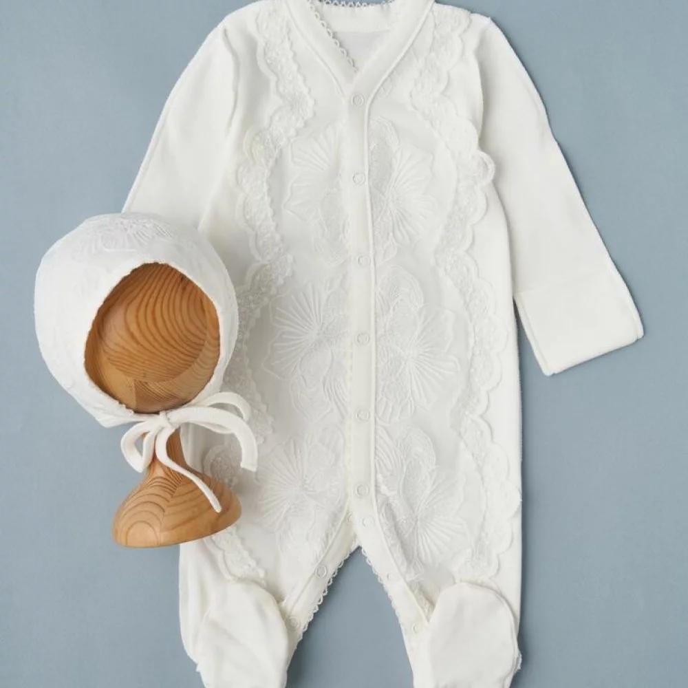 Комплект «Лилиана» — это гармоничное сочетание практичности и трогательной эстетики для самых маленьких. Набор из комбинезона и чепчика выполнен из премиального хлопка интерлока нежного кремового оттенка, который деликатно подчёркивает невинность новорождённого.