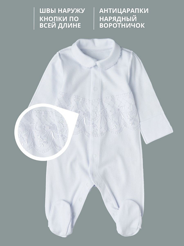 Кружевной набор для выписки малыша из роддома. Комбинезон выполнен из 100% хлопка, швами наружу и украшен кружевом. Чепчик однослойный с завязками, со швами наружу. Комплект смотрится невероятно нежно и станет украшением для Вашей выписки в любое время года. УХОД: рекомендована ручная или машинная стирка с использованием детского порошка, на деликатном режиме, при температуре воды не выше 40 градусов. Не отбеливать. Сушить вдали от обогревательных приборов и прямых солнечных лучей.