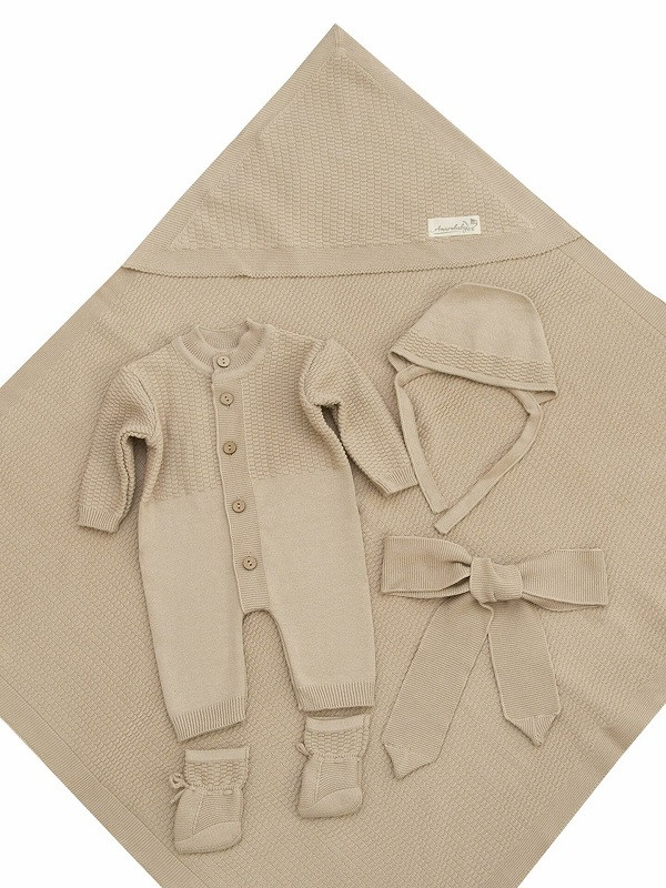 Комплект на выписку вязаный Amarobaby Pure Love New person демисезонный песочный 56