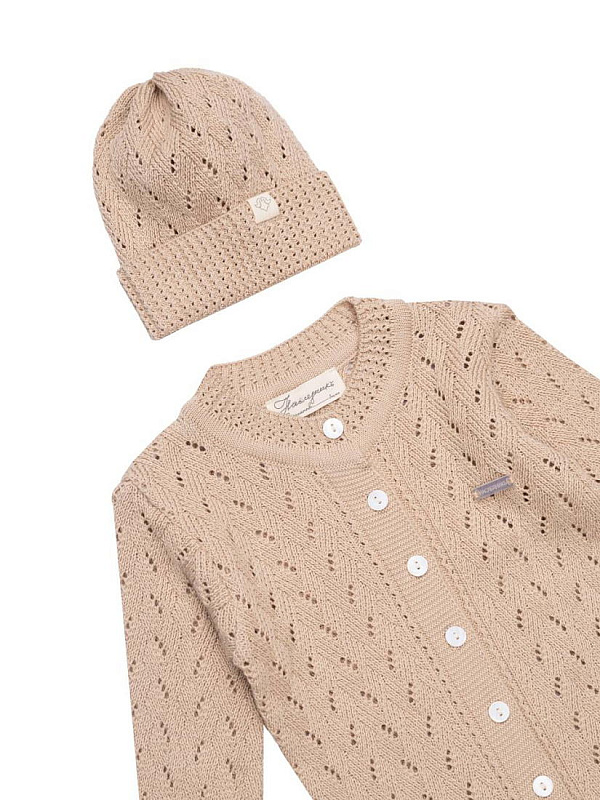 Комплект НаследникЪ Выжанова Колосок комбинезон и шапка НВ-МТ-069 ЧЗ бежевый