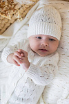 Комплект "Колосок" состоит из комбинезона и шапки, выполненных из 100% хлопка. Данный комплект идеально подходит для малышей благодаря мягкости и натуральности материала. Комбинезон имеет длинные рукава, застегивается на удобные пуговицы спереди, что облегчает процесс одевания и переодевания ребенка. Вязаная текстура украшена аккуратным узором в виде колоска, придающим изделию оригинальность и нежность. Светлый оттенок делает комплект универсальным и подходящим как для мальчиков, так и для девочек. Шапка выполнена в том же стиле и гармонично дополняет образ, обеспечивая дополнительный комфорт и тепло. Материал комплекта обеспечивает оптимальную циркуляцию воздуха, предотвращая перегрев, а хлопок гипоаллергенен и приятен к телу малыша. Дизайн отличается лаконичностью и продуманностью, что делает комплект практичным выбором для ежедневного использования. Вязаная структура придает изделиям легкую эластичность, не сковывая движения ребенка.