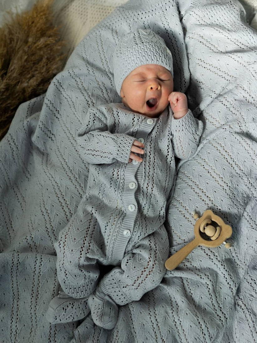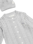 Комплект "Оригами": комбинезон + шапка выполнен из мягкого трикотажа, который обеспечивает максимальный комфорт для малыша. Материал — 100% хлопок, что гарантирует безопасность и гипоаллергенность для нежной кожи ребенка. Комбинезон имеет застежку на пуговицы по всей длине, что облегчает процесс переодевания. Узор в виде ажурной вязки создает интересную текстуру, добавляя элегантности и легкости образу. Шапка выполнена в том же стиле, гармонично дополняя комбинезон и обеспечивая дополнительное тепло и уют. Благодаря натуральному составу, комплект отлично дышит и поддерживает оптимальную температуру тела малыша. Приятная на ощупь ткань не вызывает раздражения и подходит для длительного контакта с кожей. Лаконичный дизайн и аккуратная отделка позволяют использовать комплект как для дома, так и для прогулок.