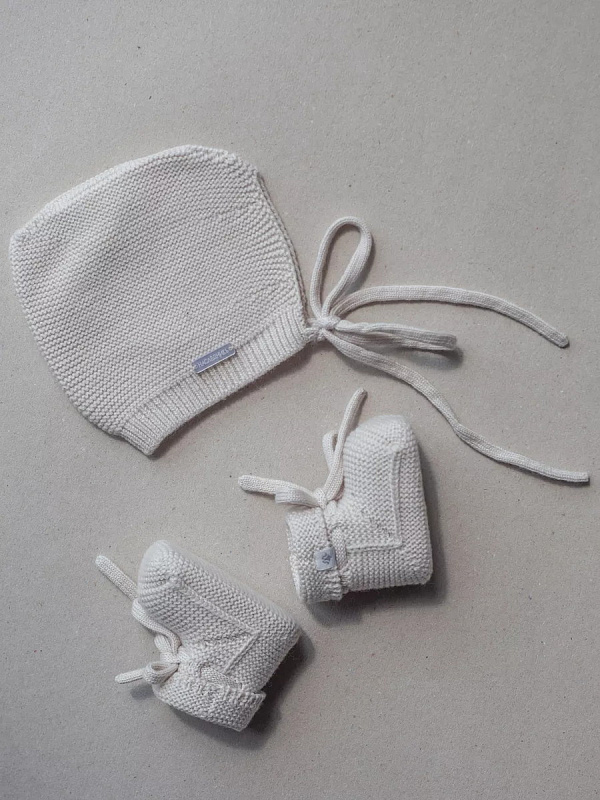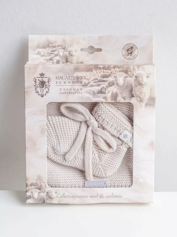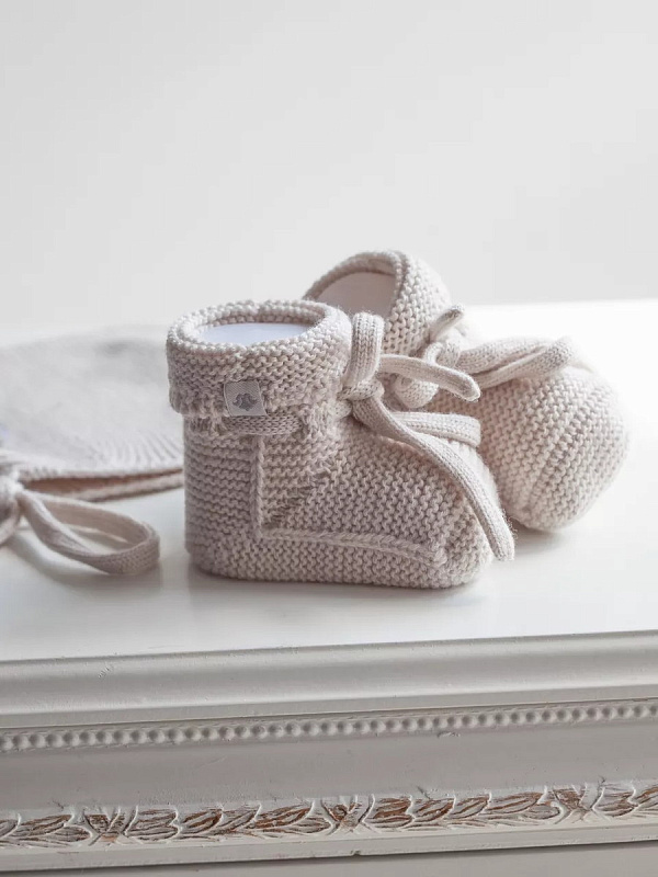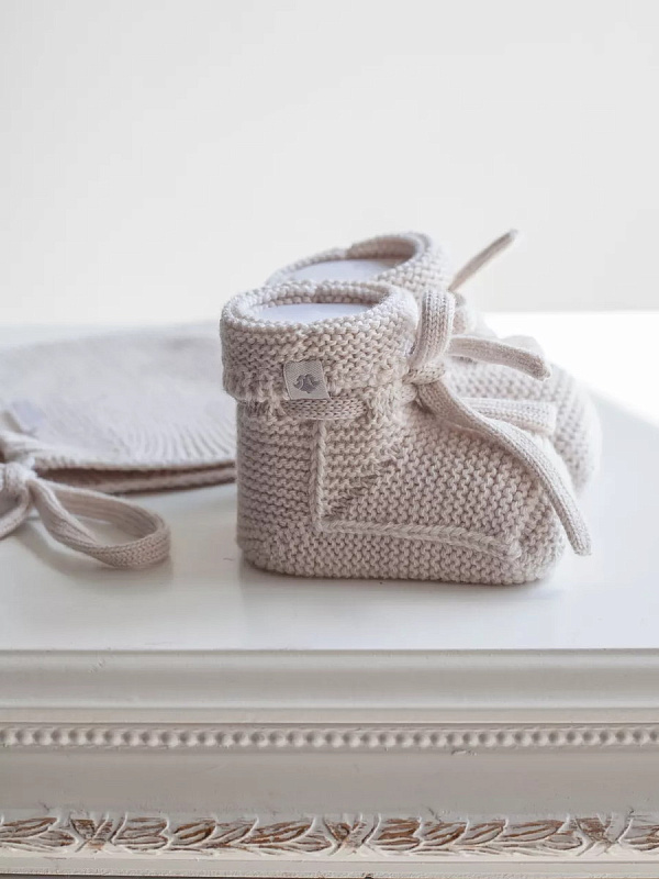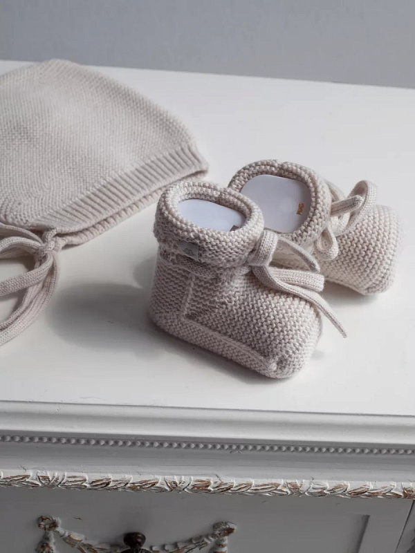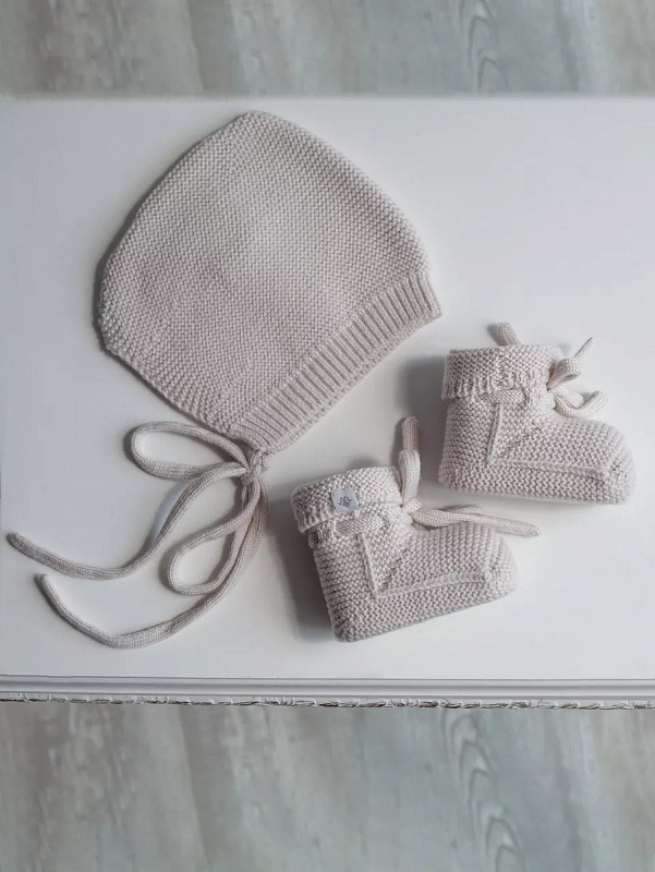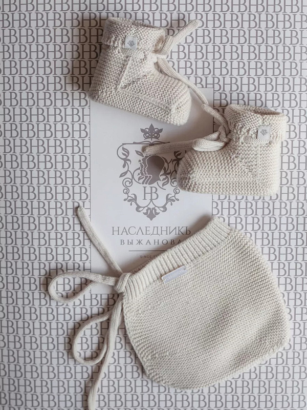 Комплект НаследникЪ Выжанова шапка и пинетки НВ7011 светло-бежевый 62