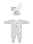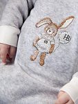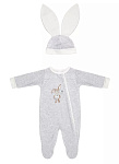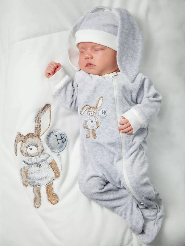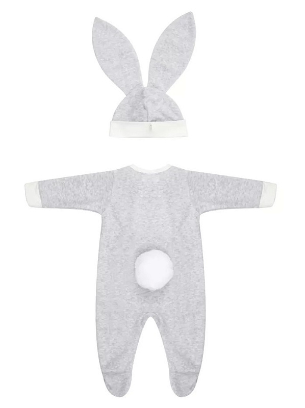 Комплект велюровый комбинезон + шапка. Модель свободного силуэта с застежкой на молнию спереди, легко и быстро одевается и снимается. Подходит для прохладных летних прогулок, а также для проведения фотосессий. Шапочка декорирована ушками, комбинезон хвостиком, что придает комплекту изюминку.
