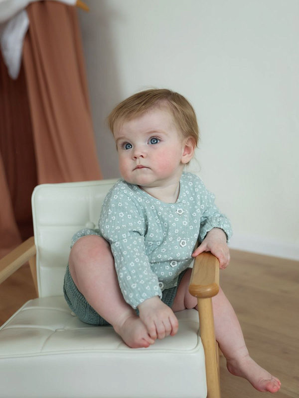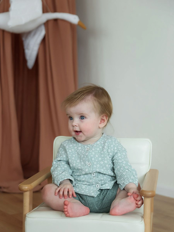Комплект одежды для девочки состоит из туники и шортиков. Комплект из мягкого экологичного хлопкового материала, модель свободного силуэта с застежкой на пуговицы спереди, легко и быстро одевается и снимается. Материал изделия позволяет коже малыша дышать. Подходит для летних прогулок, а также для повседневной носки.