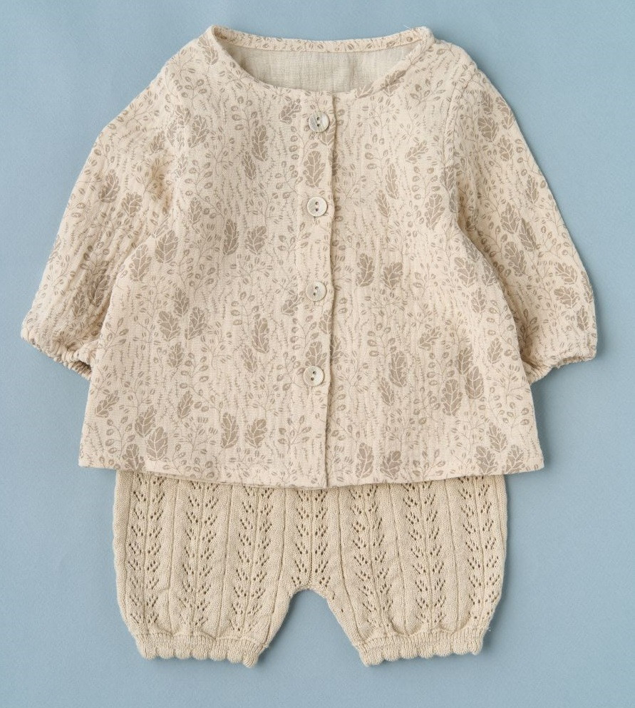 Комплект одежды Little Star 2 пр. 127435 веточки на бежевом/серо-бежевый 68