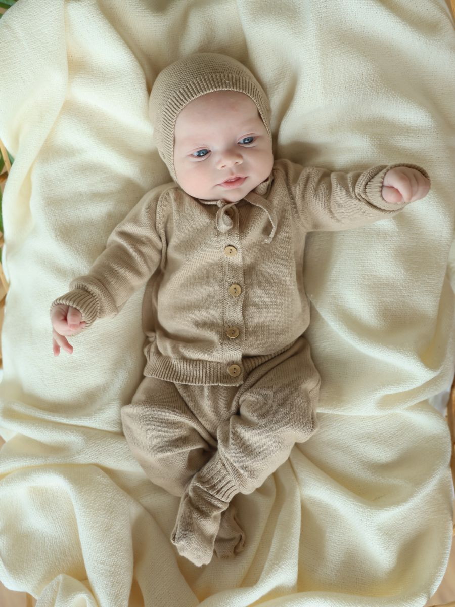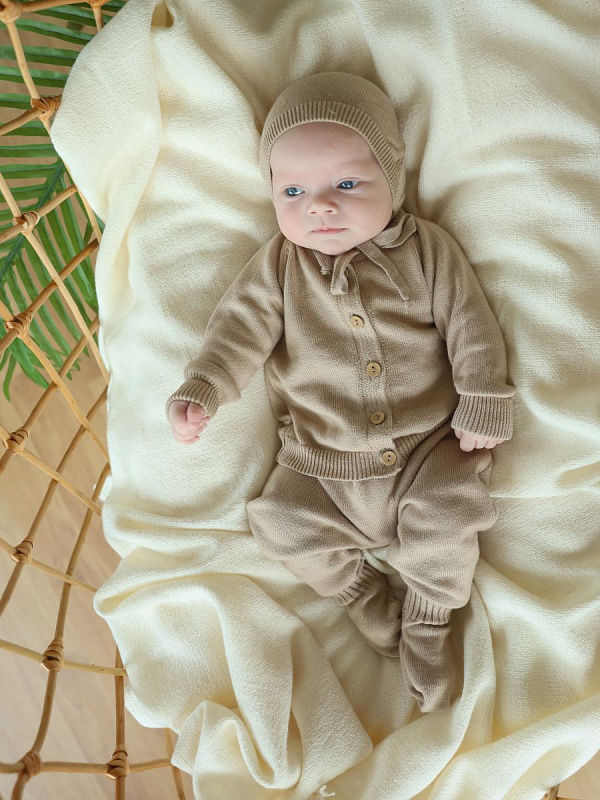 Детский комплект выполнен из вязаного хлопка, который придает нежность. Комплект- прекрасное дополнение для ежедневного (базового) гардероба Вашего малыша. Как самостоятельная детская одежда используется при температуре +10+20С! Материал мягкий, эластичный, приятный для нежной кожи ребенка, хорошо держит форму, не выгорает и не теряет цвет при стирках, дышит и легко впитывает влагу, обеспечивая максимальный комфорт, имеет простой, естественный и эффектный вид.