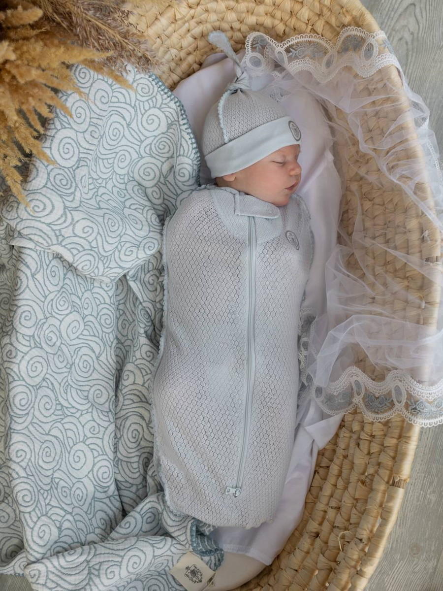 Комплект пелёнка-кокон с шапочкой НаследникЪ Выжанова Серо-голубой 01038-11004 ЧЗ 56