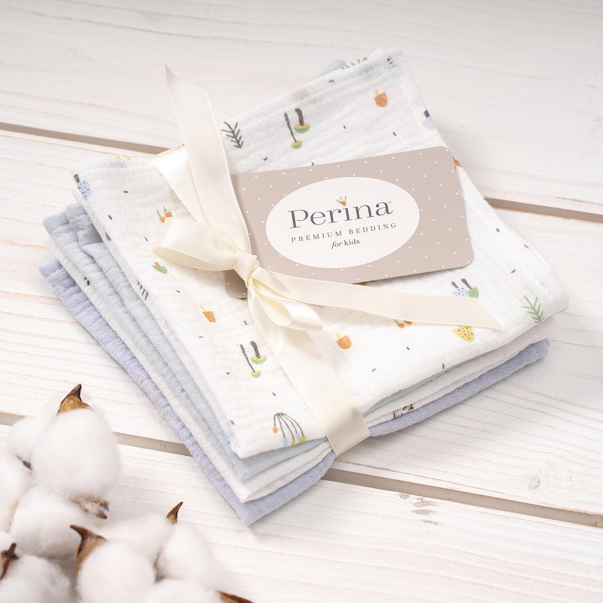 Комплект Perina муслиновых платочков-салфеток 4 шт Голубой микс
