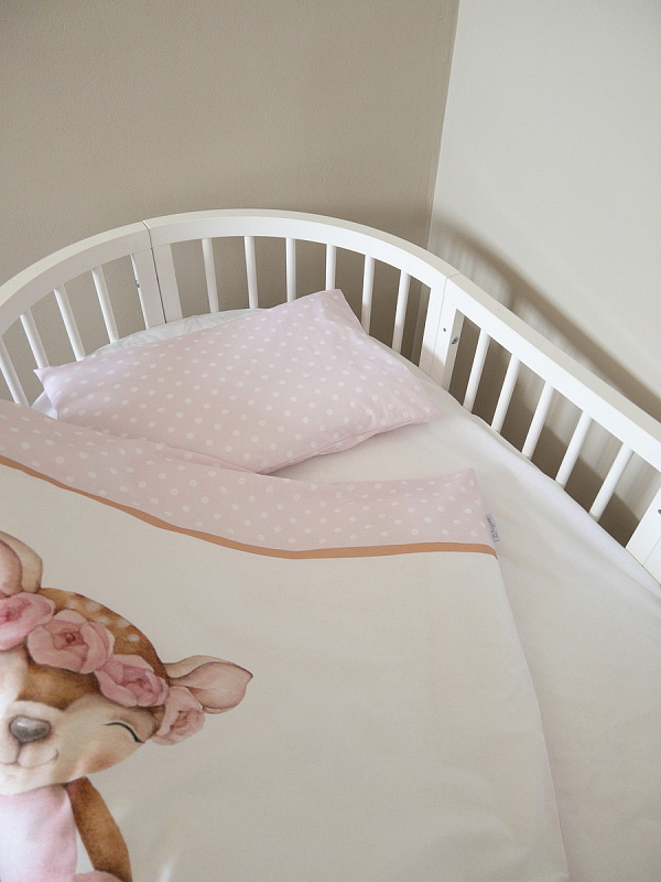 Стильный комплект в кроватку бессменно прослужит крохе в течение первых трех лет его жизни и обеспечит наиболее комфортный и безмятежный отдых. Набор, выполненный из нежного хлопкового материала, включает в себя наволочку, пододеяльник и простынку. Подходит для как для овальных, так и для прямоугольных моделей.