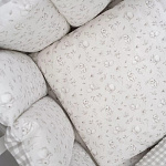 Стильный комплект в кроватку бессменно прослужит крохе в течение первых трех лет его жизни и обеспечит наиболее комфортный и безмятежный отдых. Набор, выполненный из нежного хлопкового материала, включает в себя наволочку, пододеяльник и простынку. Подходит для как для овальных, так и для прямоугольных моделей.